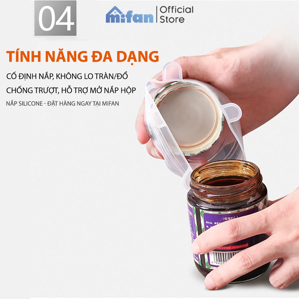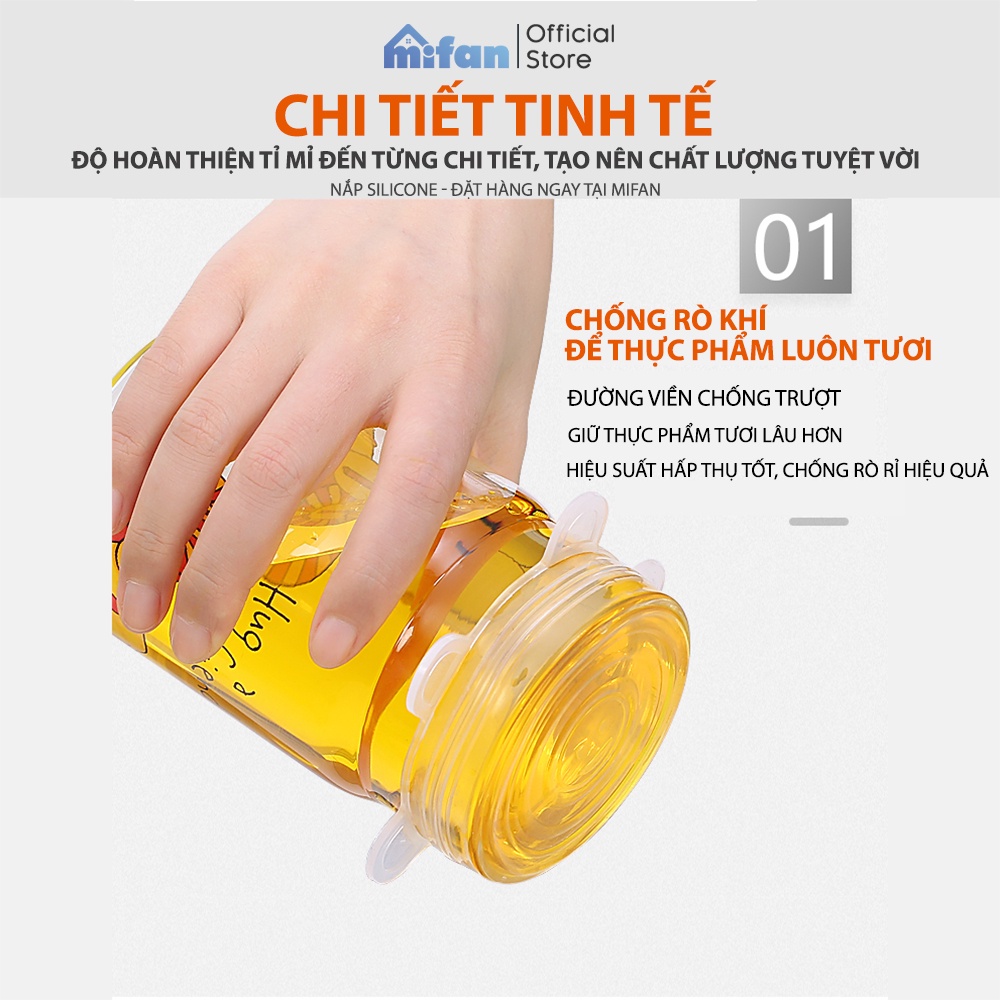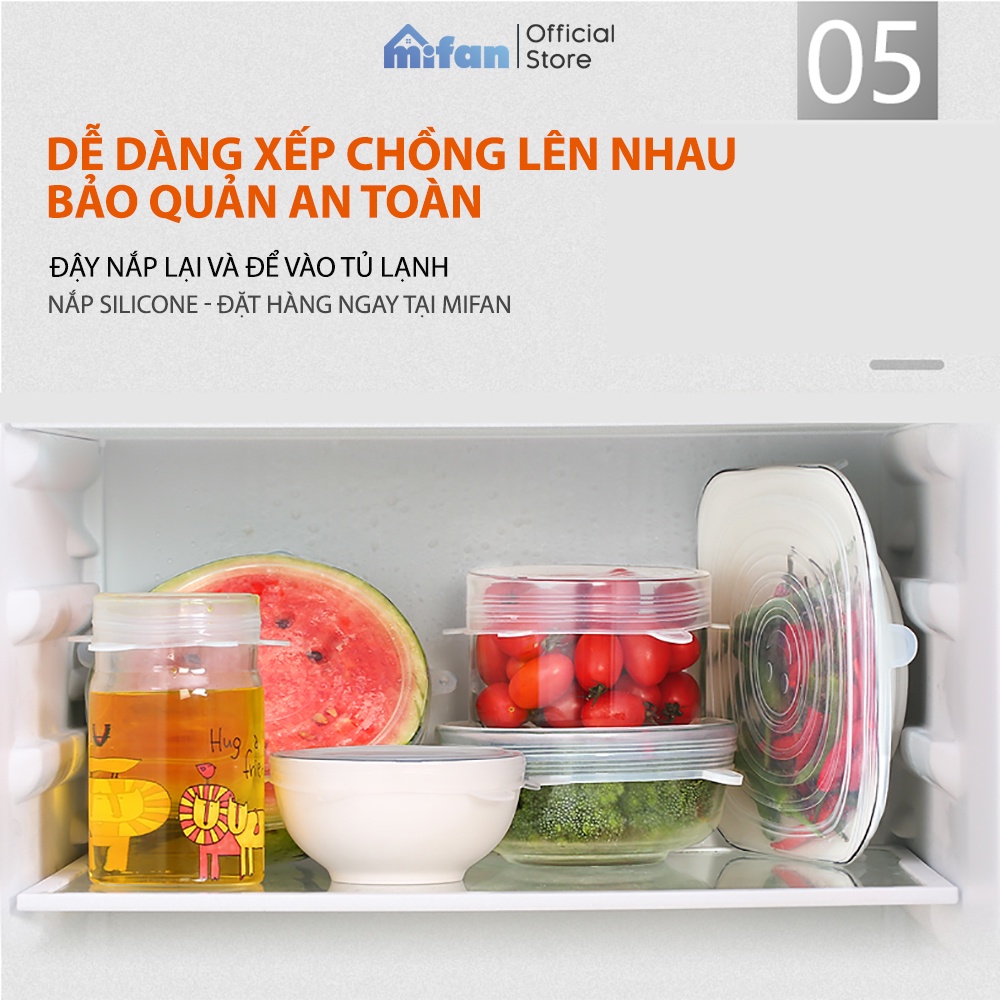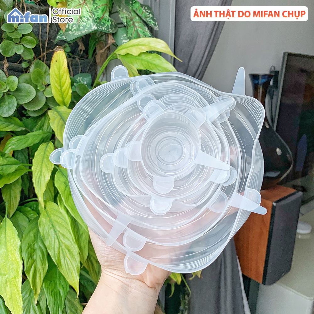 Bộ 6 Miếng Silicone Bọc Thực Phẩm Cao Cấp MIFAN - Nắp đậy màng Silicon bảo quản thức ăn Dày Dặn Độ Co Giãn Tốt
