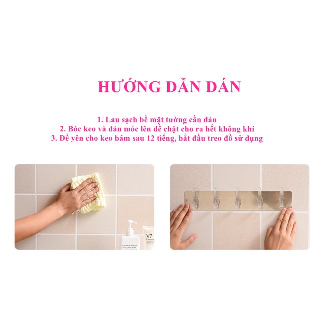 ** LƯU Ý: SẢN PHẨM CHỈ BÁM DÍNH TRÊN TƯỜNG GẠCH MEN, KÍNH, MẶT GỖ PHẲNG, TƯỜNG SƠN NƯỚC PHẲNG MỊN, KHÔNG BÁM DÍNH TRÊN TƯỜNG XI MĂNG, TƯỜNG THÔ NHÁM, BONG TRÓC...LAU SẠCH MẶT TƯỜNG VÀ BÓC DÁN SẢN PHẨM, ĐÈ CHẶT VÀ ĐỂ KEO BÁM DÍNH SAU 12 TIẾNG MỚI BẮT ĐẦU TREO ĐỒ LÊN,