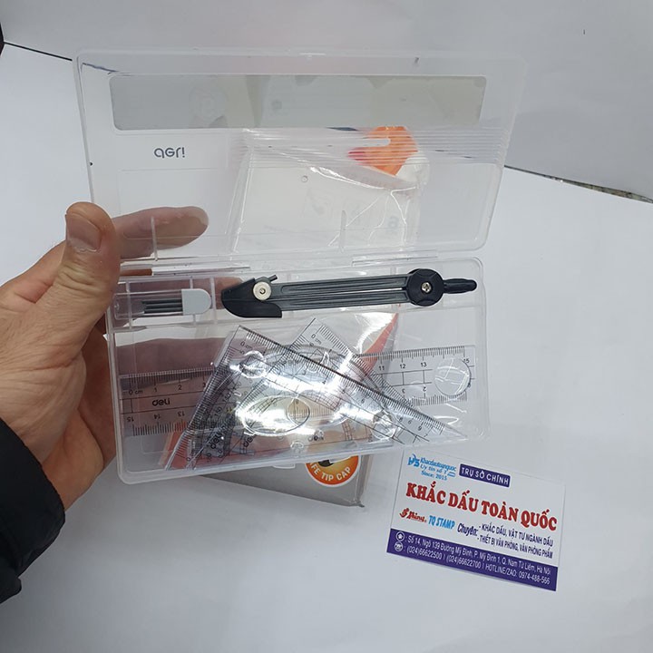 (1).THÔNG TIN SẢN PHẨM– Tên sản phẩm: Bộ 6 món dụng cụ đo gồm 2 Cái Eke, 1 Cái Compa, 1 Cái đo độ, 1 Vỉ ruột bút chì, 1 Thước kẻ ( Deli E9609)