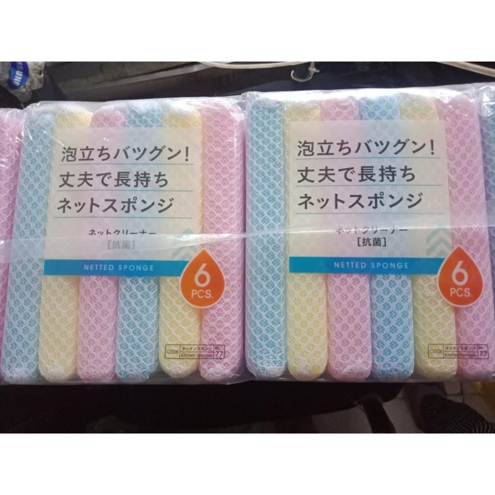 Bộ 6 mút lưới rửa chén tạo bọt kháng khuẩn Daiso C008-77 hàng Nhật