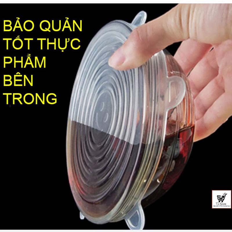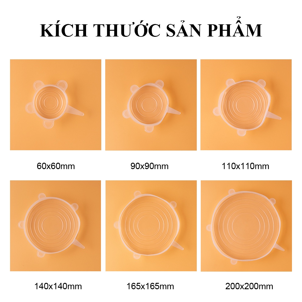Bộ 6 nắp bọc thực phẩm , 6 miếng Silicon co dãn chịu nhiệt đậy chén bát đa năng