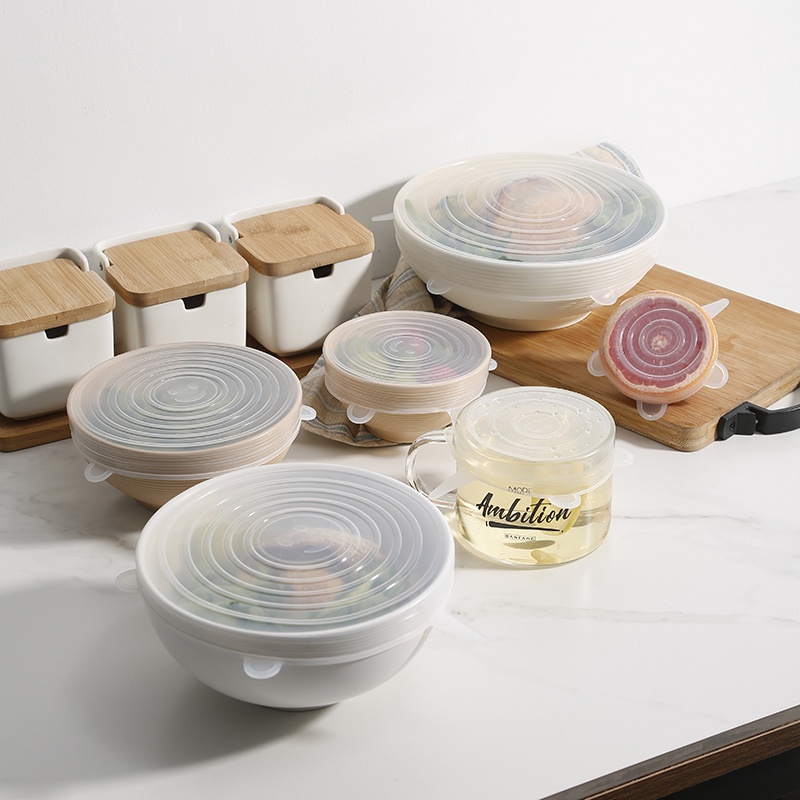 Giới thiệu (𝗚𝗶𝗮́ 𝗦𝗶̉) Bộ 6 Nắp Đậy silicon bảo quản thức ăn tiện lợi