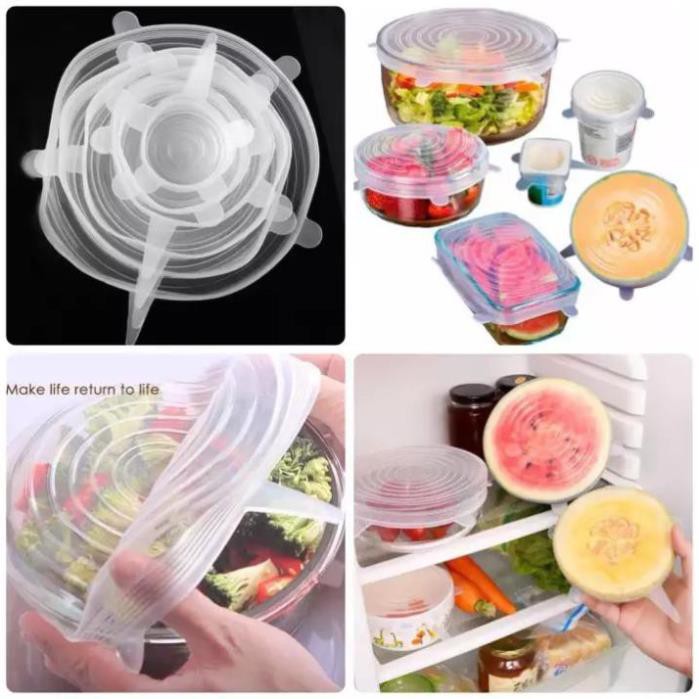 love love loveBộ 6 Nắp Silicon Co Giãn Bảo Vệ Thực Phẩm - Che Đậy Đồ Ăn Hoa Quả - Màng Bọc Thực Phẩm Silicon Tái Sử Dụng Được