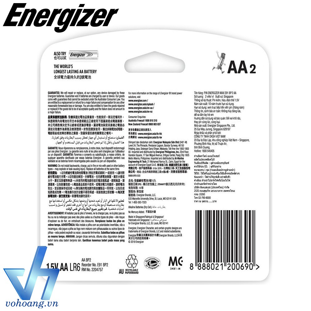 ➤ Nhà sản xuất: Energizer Singapore Pte., Ltd.