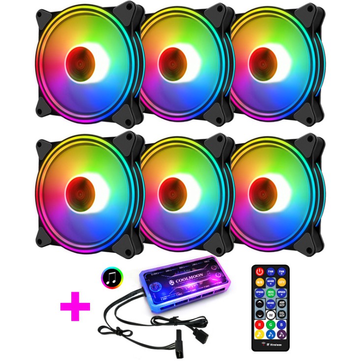 Máy tính & Laptop > Linh Kiện Máy Tính > Quạt và Tản Nhiệt || Bộ 6 Quạt Tản Nhiệt, Fan Case Coolmoon M1 Led RGB 16 Triệu Màu, 366 Hiệu Ứng - Kèm Bộ Hub Sync Main, Đổi Màu Theo NhạcCòn hàng