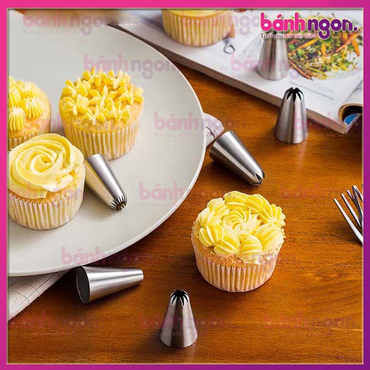 Bộ đui/đuôi bắt bông kem cơ bản 6 chiếc size nhỏ kèm túi bóp silicon và chốt giữChất liệu: Thép cao cấp không gỉ.