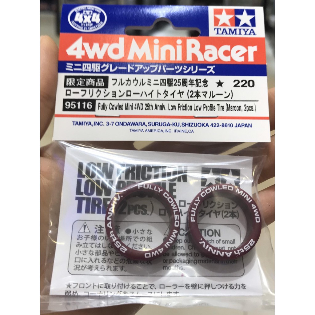 95116 Phụ Kiện Mini 4WD FULLY COWLED MINI 4WD 25th ANNIV. LOW FRICTION LOW PROFILE TIRE (MAROON, 2PCS.) - GDC