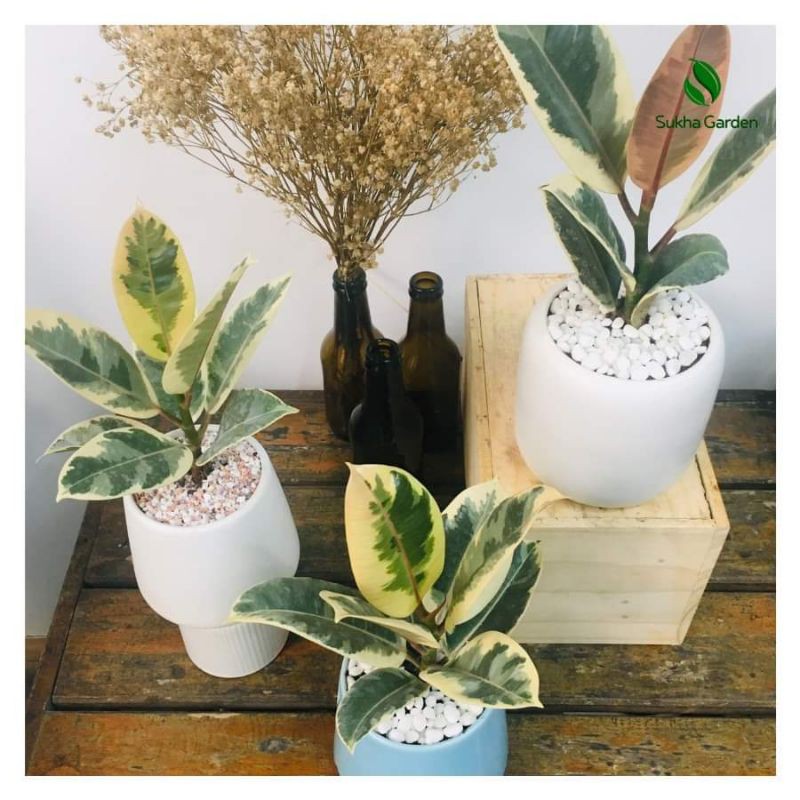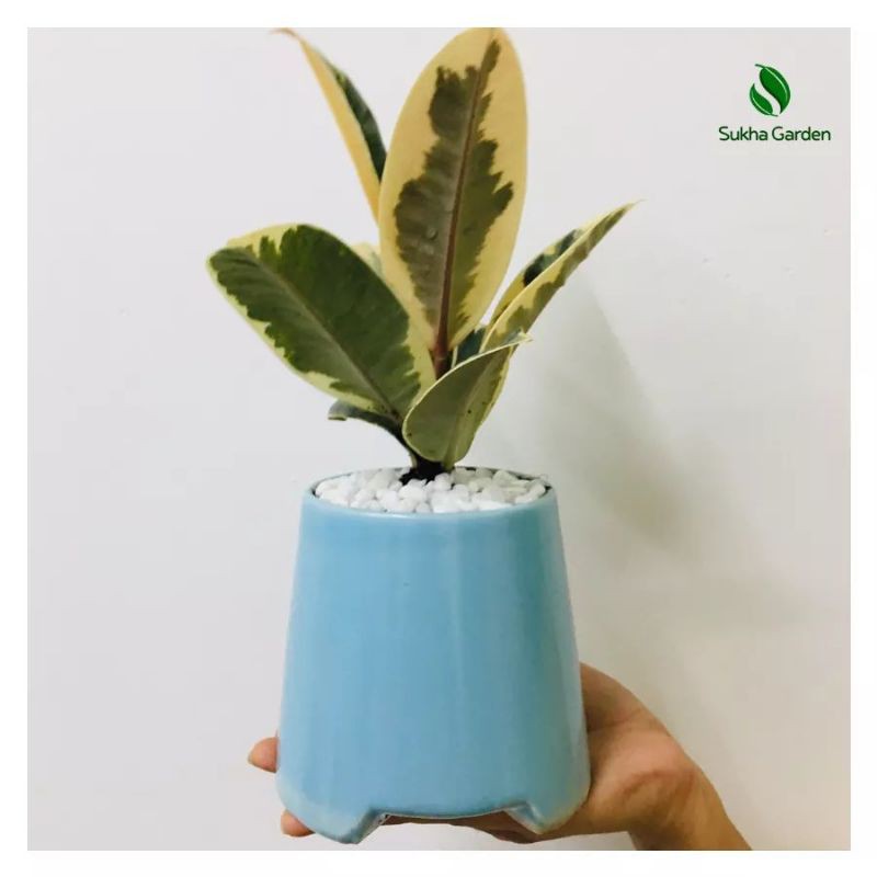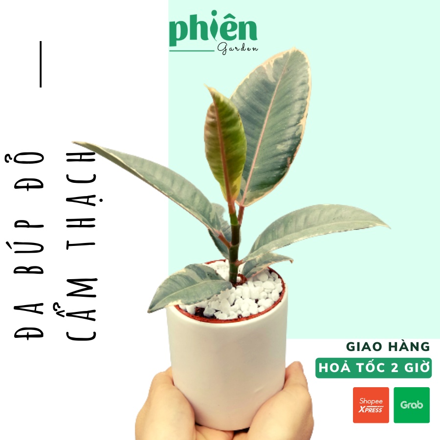 Nhà cửa & Đời sống > Làm vườn > Cây cảnh || Cây Đa Búp Đỏ Cẩm Thạch để bàn kèm Chậu gốm tráng menCòn hàng