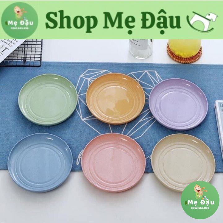 - Đĩa làm từ LÚA MẠCH ạ, sản phẩm an toàn cho người sử dụng và rất nhẹ nhàng ạ. Đặc biệt năm nay wed ra bảng màu cực xinh xắn.