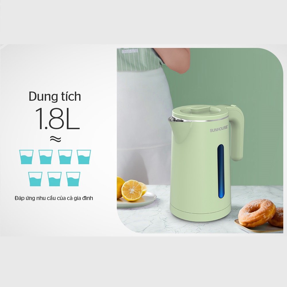 Ấm Siêu Tốc Sunhouse SHD1353 Đế Đúc 1.8l 1500w Chính Hãng, Bình Siêu Tốc Inox 2 Lớp Cao Cấp Chống Bỏng