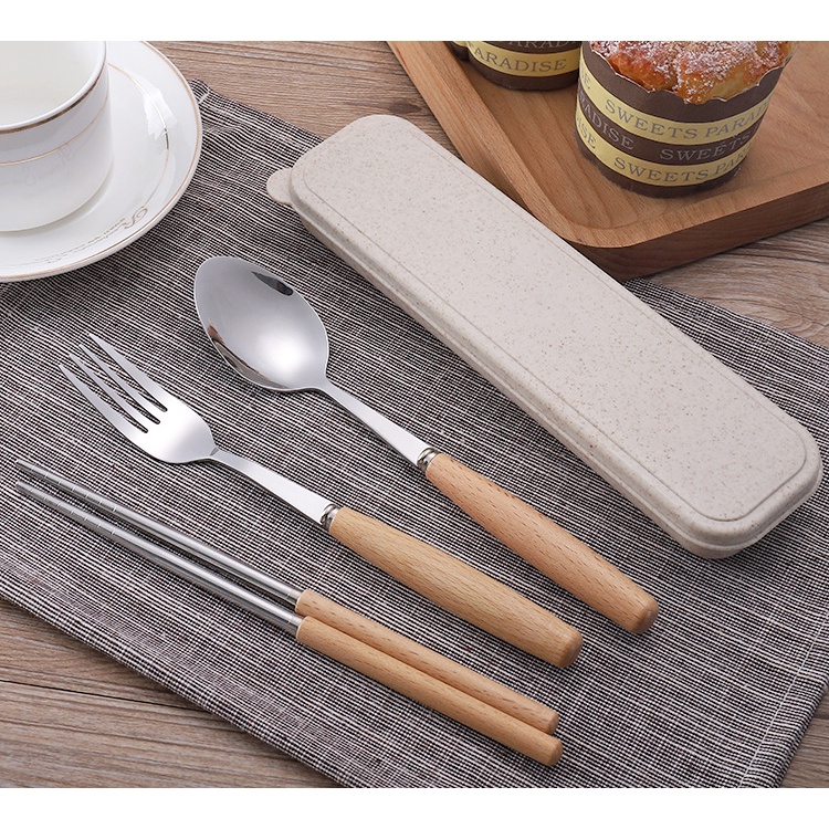 Bộ hộp 3 món đũa, dĩa, thìa tiện dụng.