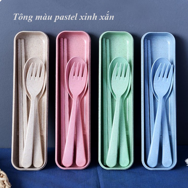 Bộ gồm : 1 đôi đũa, 1 thìa, 1 dĩa và 1 hộp đựng