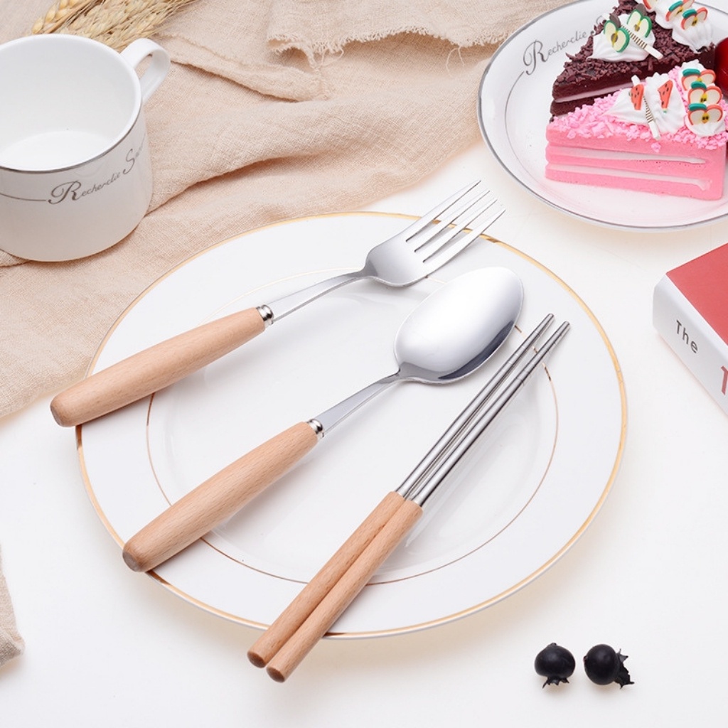 - Hộp đựng vừa 3 món nhỏ gọn tiện lợi gồm đũa, thìa, dĩa rất thuận tiện mang theo.