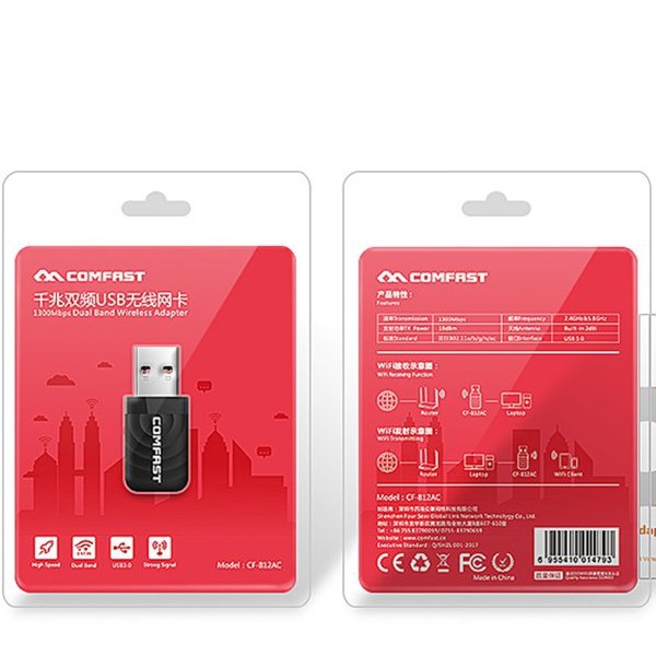 Máy tính & Laptop > Thiết Bị Mạng > Bộ Thu Wifi || [AC1300 Mbps] Usb Thu Wifi COMFAST CF-812AC Băng Tần Kép 2.4 GHZ Và 5 GHZ ( Hỗ Trợ Macos, Windows, HackintoshCòn hàng