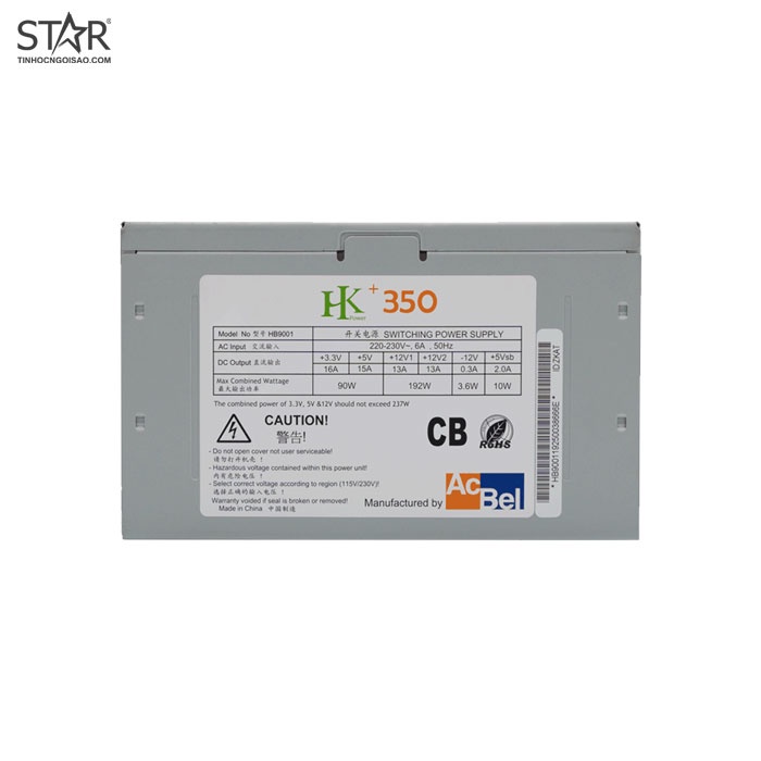 Giới thiệu Nguồn Acbel HK+ 350W + Dây Nguồn