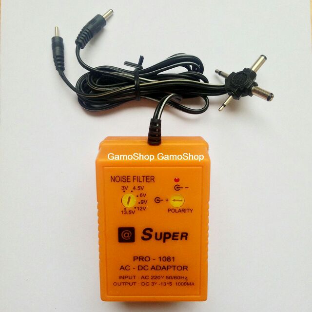 Nguồn Adapter (Adaptor) Đa Năng Tuần Hoàn SUPER 1000mA Pro-1081 ,6 Đầu Ra 3V 4.5V 6V 9V 12V 13.5V DC Đảo Cực Được (Cam)