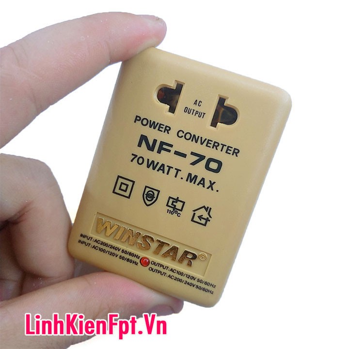 + Adaptor đổi điện 220V <=> 110V Revolve TH-1010 thích hợp sử dụng cho tiết bị có đầu ghim dạng tròn hoặc dẹp, có thể chọn điện áp "Input", để bảo đảm được sự phối hợp tương ứng diện áp vào và pha điện àp mà bạn cần sử dụng.