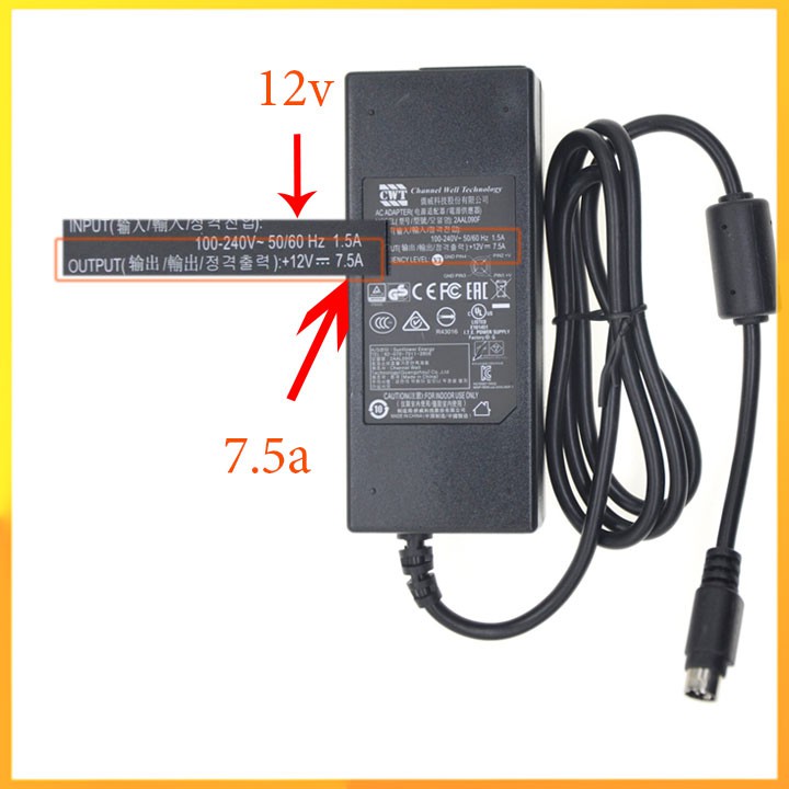 Adapter nguồn CWT 12v 7.5a chân 4 pin là bộ đổi nguồn từ dòng điện 100 - 240v xuống dòng điện 12v 7.5a, bộ nguồn cung cấp dòng điện ổn định, không gây ra hiện tượng chập chờn, bảo vệ sự quá tải, quá áp, đoản mạch trong quá trình sử đụng.