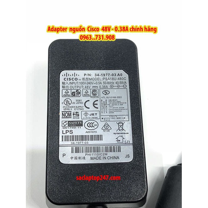 Thông số kỹ thuật trên bộ nguồn wifi cisco 48V chính hãng