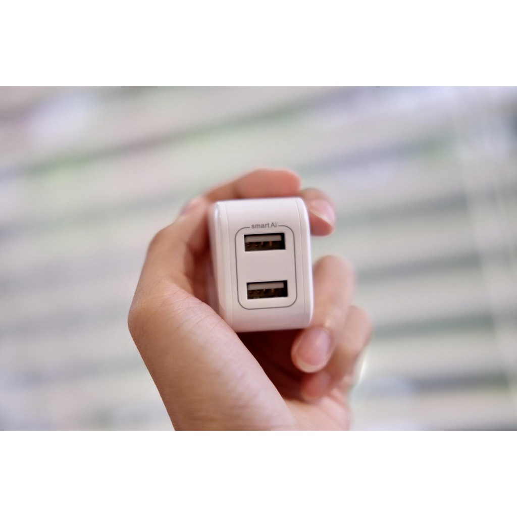 Thiết kế ra 2 cổng sạc USB A với công nghệ Smart AI , công suất 12W có thể sạc cùng lúc 2 smartphone hoặc sạc một lúc 1 iPad/Tablet. Với công nghệ chip thông minh sẽ giúp cho củ sạc nhận biết được từng thiết bị cắm sạc để cho ra một công suất phù hợp giúp thiết bị được sạc một cách nhanh nhất và an toàn nhất.