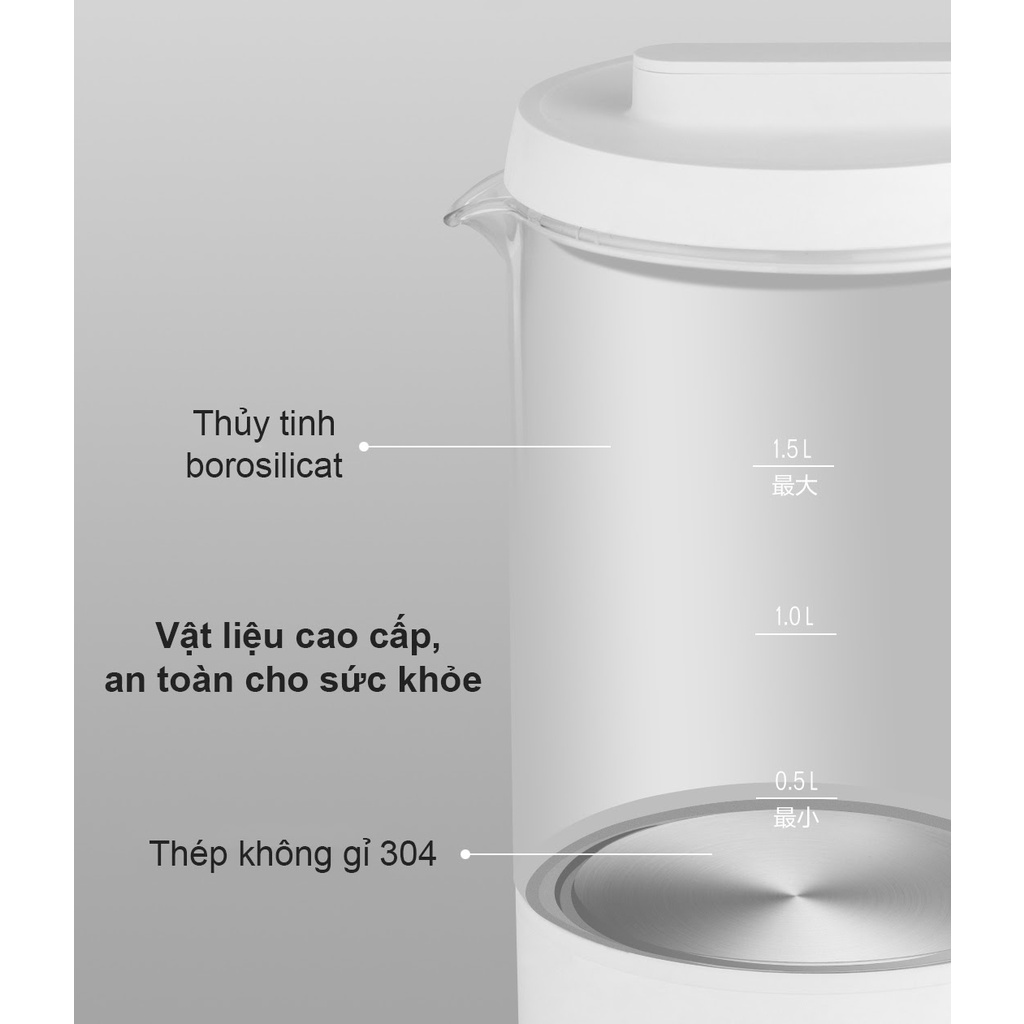 Thân bình được làm từ thủy tinh borosilicat cao cấp, có khả năng chịu nhiệt tốt, không dễ bị vỡ. Đồng thời, chất liệu này còn giúp người dùng dễ dàng vệ sinh và thuận tiện quan sát rõ mực nước trong bình. Phần đáy bên trong được gia công từ vật liệu thép không gỉ 304, mang đến sự bền bỉ, hỗ trợ chống ăn mòn và oxy hóa, đảm bảo an toàn với sức khỏe người dùng.