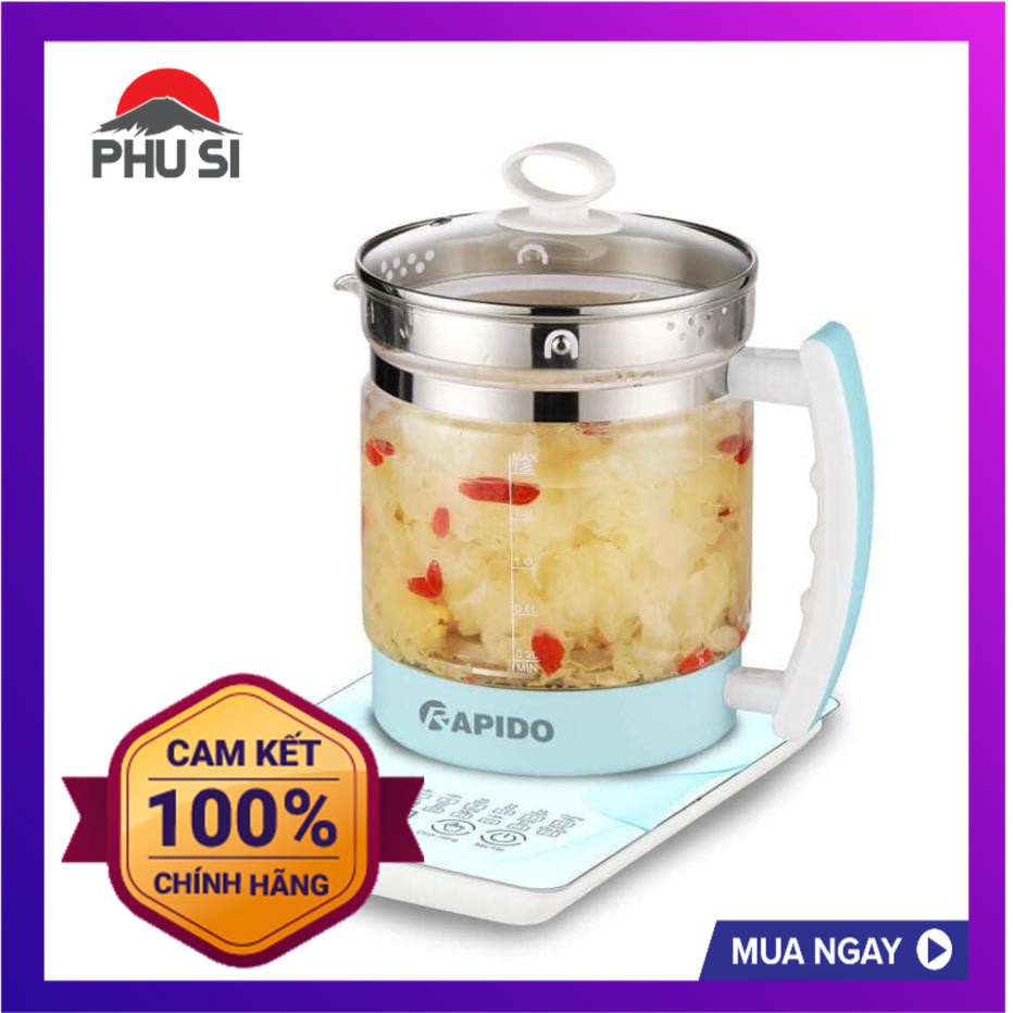 Không đơn thuần là ấm đun nước thông thường, ấm điện đa năng Rapido với 24 chế độ nấu tự động sử dụng dễ dàng, nhanh chóng và tiện lợi. Ngoài chức năng nấu nước ấm điên đa năng Rapido còn là ấm pha trà, cà phê tự động, nồi hầm các món dinh dưỡng yêu cầu thời gian dài như sắc thuốc bắc, hầm cháo, chưng yến ….hay nồi đa năng tiện dụng dành riêng cho dân văn phòng như nấu mì, nấu súp, nấu lẩu, và các món tráng miệng như sữa chua, chè,… hâm đồ ăn nhanh tiện lợi mà không cần tới lò vi sóng, không sợ sóng viba ảnh hưởng tới sức khỏe: hâm sữa, hâm rượu, hâm đồ ăn thừa,…