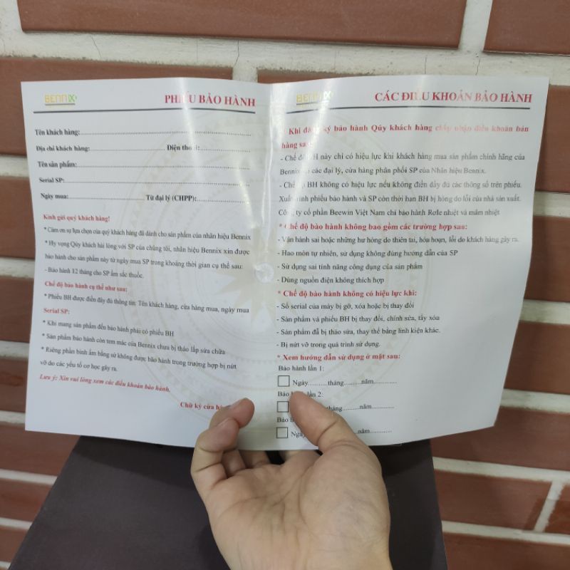 Bảo hành có thể bằng hoặc tem hoặc số đơn hàng khách đặt mua kể từ ngày khách nhận hàng