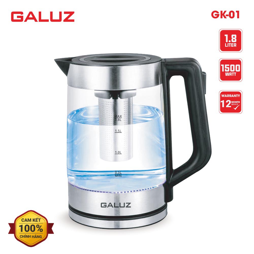 Ấm điện siêu tốc thủy tinh kiêm bình pha trà Galuz GK-01 dung tích 1.8 lít - Hàng chính hãng, bảo hành 12 tháng