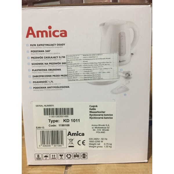 Thiết Bị Điện Gia Dụng > Đồ gia dụng nhà bếp > Ấm đun siêu tốc || [Mã 44ELSALE2 giảm 7% đơn 300K] Ấm đun, Bình đun siêu tốc nhập khẩu châu âu Amica KD-1011 - Hàng chính hãngCòn hàng