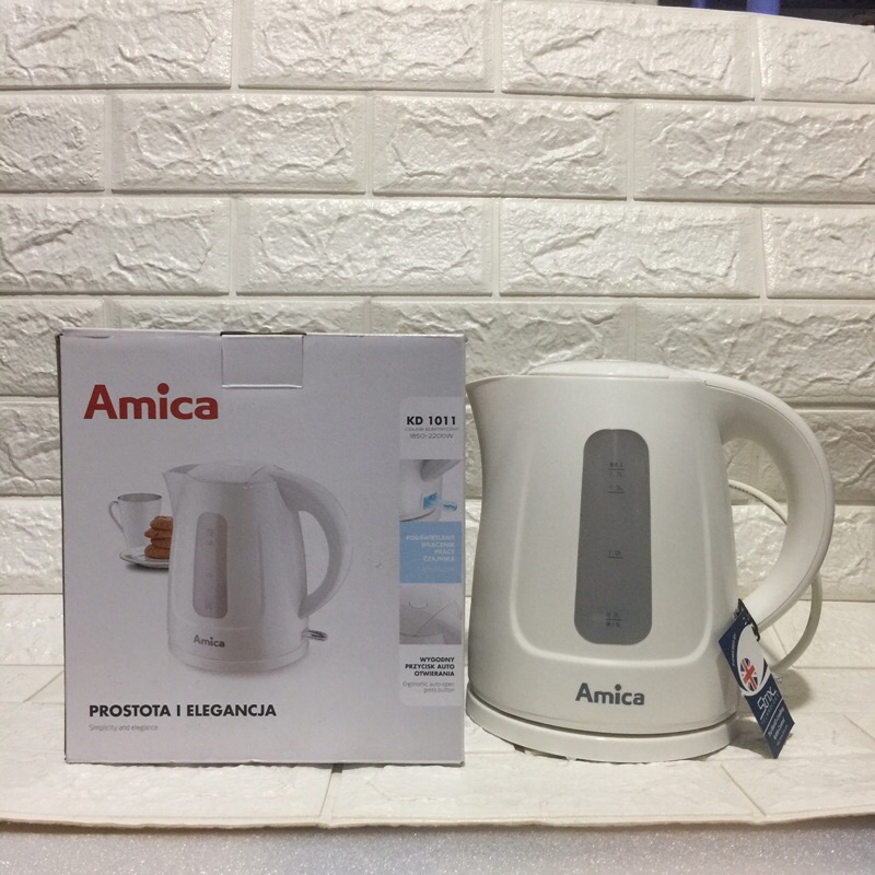 Ấm đun siêu tốc Amica KD - 1011 ông suất 2200W chính hãng Amica, sử dụng công nghệ hiện đại giúp đun sôi nước nhanh chóng giúp bạn luôn có được nước nóng để pha cà phê, trà,... dùng trong cả ngày hoặc những dịp đãi khách vô cùng tiện dụng. Sản phẩm với thiết kế hiện đại, màu sắc trang nhã, được làm từ nhựa cao cấp không rỉ , chịu nhiệt, chịu lực tốt đồng thời có khả năng chống trầy xước, chống va đập không những cho độ bền cao mà còn mang lại vẻ đẹp sang trọng cho không gian sống của bạn thêm phần sinh động hơn. Với công suất lên đến 2200W giúp đun nhanh hơn cùng dung tích 1.7 lít đủ lượng nước cần dùng cho gia đình bạn mà không mất thời gian đun nhiều lần. Đăc biệt có nắp và quai cầm cách nhiệt giúp bạn linh hoạt trong việc di chuyển. Bình có miệng rộng vứa phải giúp bạn đỗ nước sôi ra vừa nhanh mà lại không sợ bị phỏng.. Bên cạnh đó bình có công tắc để bật bình siêu tốc hoạt động cùng đèn báo và thang chia mực nước rõ ràng, sẽ giúp theo dõi lượng nước một cách dễ dàng. Mâm nhiệt được thiết kế phẳng đặc biệt giúp thu nhiệt nhanh, ổn định qua đó tiết kiệm đáng kể điện năng tiêu thụ