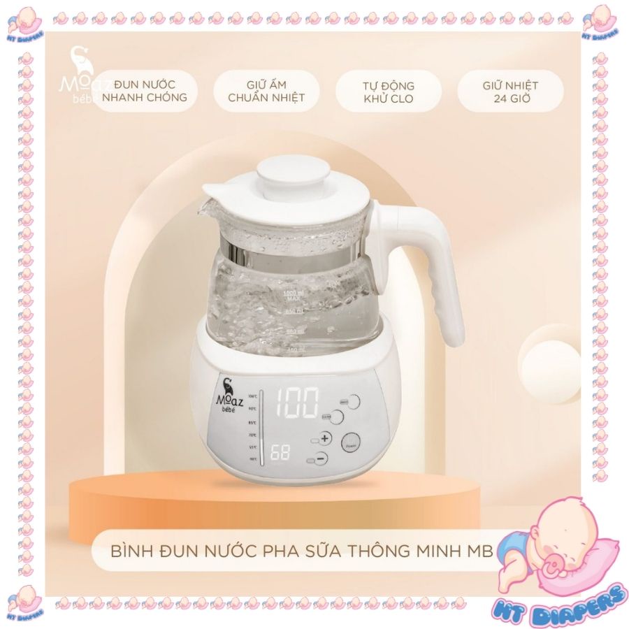 CAM KẾT CHÍNH HÃNG 100%, Đầy đủ hóa đơn chứng từ nhà sản xuất, bảo hành 12 tháng kể từ khi bóc máy- Bình đun nước thông minh MB-002 Moaz Bébé với thiết kế tinh tế, sang trọng, tự động khử clo và duy trì nhiệt lên tới 24h sẽ giúp mỗi cữ sữa của bé mẹ pha nhanh chóng, đảm bảo nguyên vẹn dinh dưỡng.