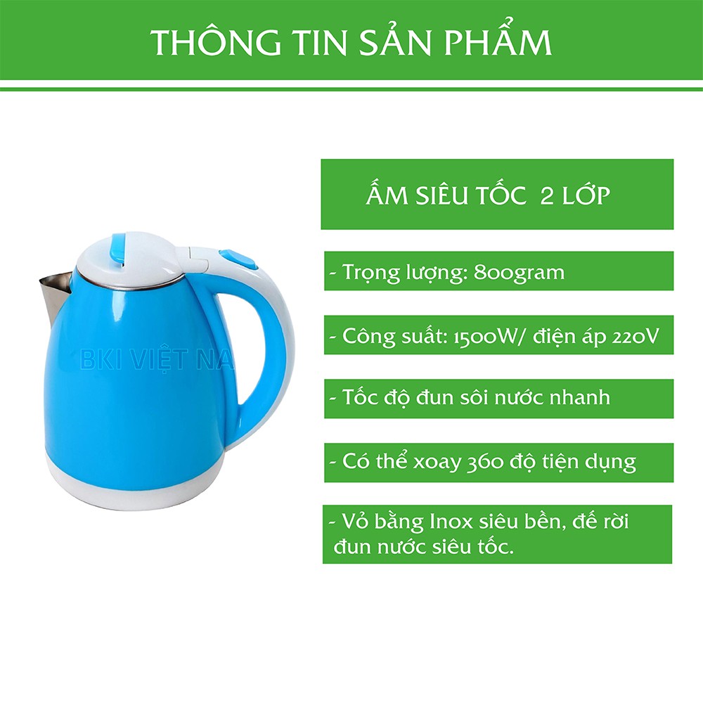 Bình đun nước siêu tốc tiện lợi và gọn nhẹ đang là sự lựa chọn hàng đầu của các gia đình. Nếu bạn băn khoăn chưa biết nên chọn lựa sản phẩm nào thì bình đun nước siêu tốc 2 lớp Electric Kettle 1.8L sẽ là lựa chọn lý tưởng cho bạnThông tin sản phẩm: