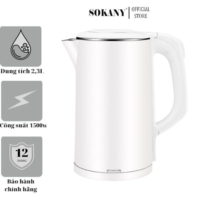 ẤM ĐUN NƯỚC SIÊU TỐC 2.3l inox 304Ấm siêu tốc dung tích 2.3l phù hợp với mọi hoạt động trong gia đình, ấm đun nước siêu tốc cao cấp chất liệu lồng ấm đúc hoàn toàn bằng inox 304 nguyên khối cho độ bền vượt trội. Ấm siêu tốc với công suất 1500 W đf, relay tự động ngắt khi nước đạt 100 độ, có chế độ giữ ấm nước ở mức 60 độ phù hợp pha sữa cho em bé.