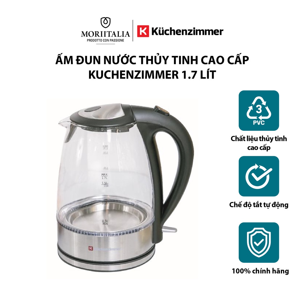 Thiết Bị Điện Gia Dụng > Đồ gia dụng nhà bếp > Ấm đun siêu tốc || [Mã BMLT300 giảm 10% đơn 499K] Ấm đun nước thủy tinh Kuchenzimmer 1.7 lít cao cấp tiện lợi Moriitalia 3000273Còn hàng