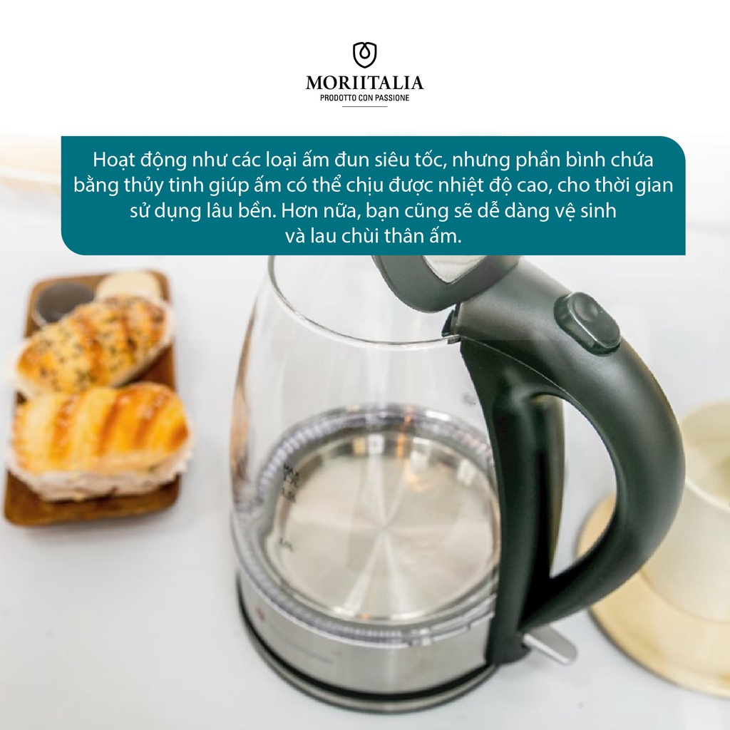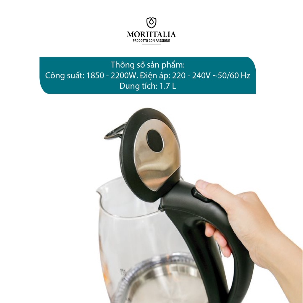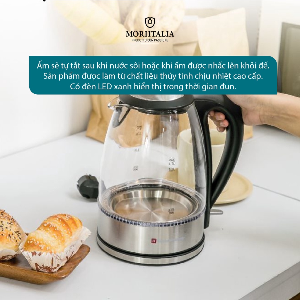 Giới thiệu [Mã BMBAU300 giảm 7% đơn 499K] Ấm đun nước thủy tinh Kuchenzimmer 1.7 lít cao cấp tiện lợi Moriitalia 3000273