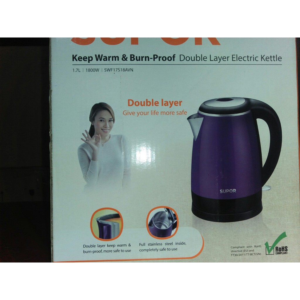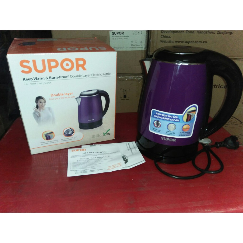 Giới thiệu BÌNH ĐUN SIÊU TỐC 2 LỚP VỎ BỎNG LÒNG INOX 304 Supor SWF17S18AVN 1.7L hàng chính hãng bảo hành 12 tháng