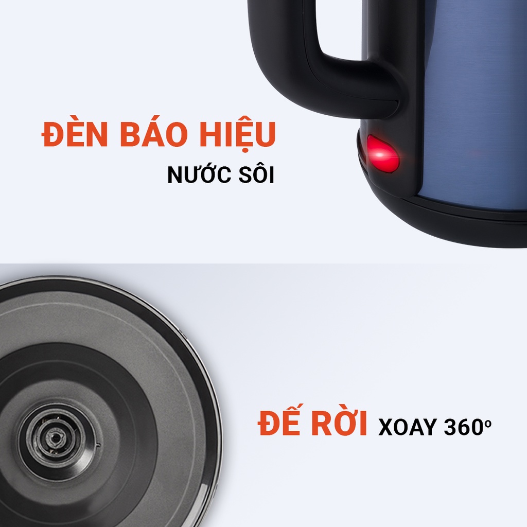Công suất mạnh mẽ 1800W giúp cho nước được đun sôi nhanh chóng, chỉ từ 3-5 phút.
