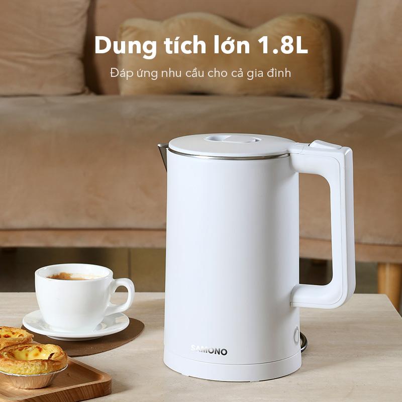 Ấm Đun Siêu Tốc Inox 304 SAMONO SW-R1 2 Lớp Chống Nhiệt 1500W 1.8L - Hàng Chính Hãng (Bảo Hành 12 Tháng)