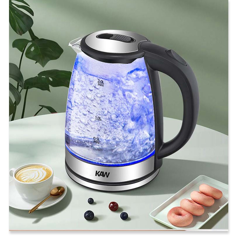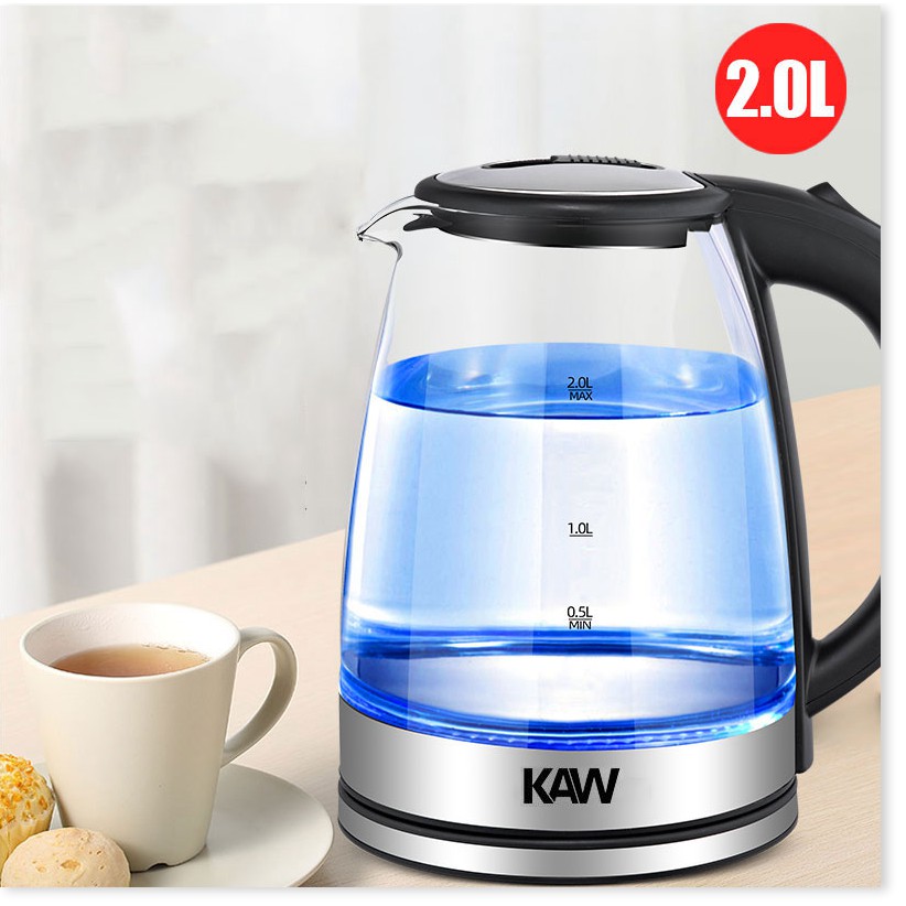 Ấm Đun Siêu Tốc KAW RK1818 ✔️Chính Hãng✔️ dung tích 2L, tiết kiệm điện, bình thủy tinh trong suốt, nước nóng siêu nhanh.