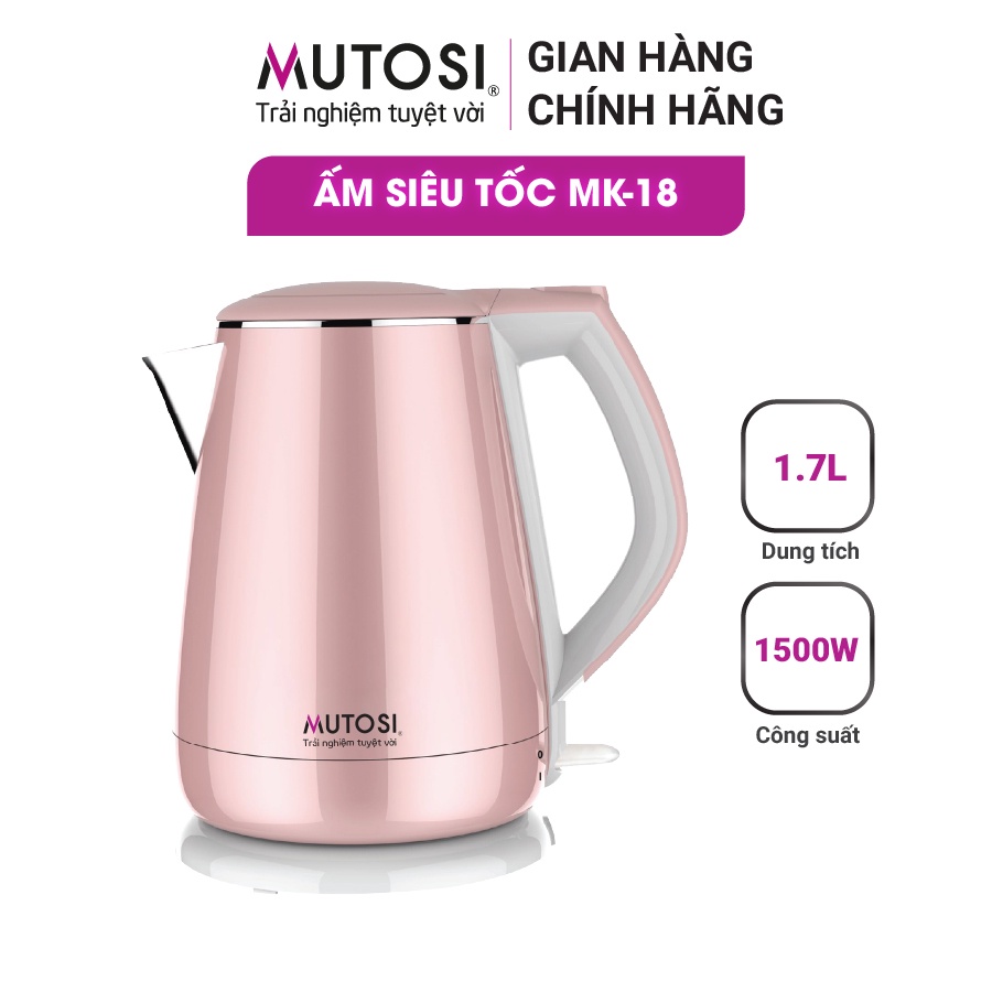 Ấm đun siêu tốc Mutosi MK-18 (hồng), 1.5L, thân ấm 2 lớp cách nhiệt siêu bền, công nghệ Nhật Bản, bảo hành 24 tháng