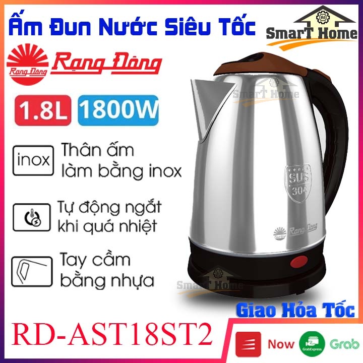 Ấm Đun Siêu Tốc Rạng Đông RD-AST18ST2 , Ấm Siêu Tốc 1.8L Chất Liệu Inox 304 Cao Cấp Chống Rò Điện Chống Quá Nóng