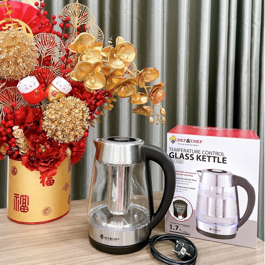 Ấm đun siêu tốc thủy tinh CHEF&CHEF CH1730D 1.7 lít điều khiển điện tử thông minh