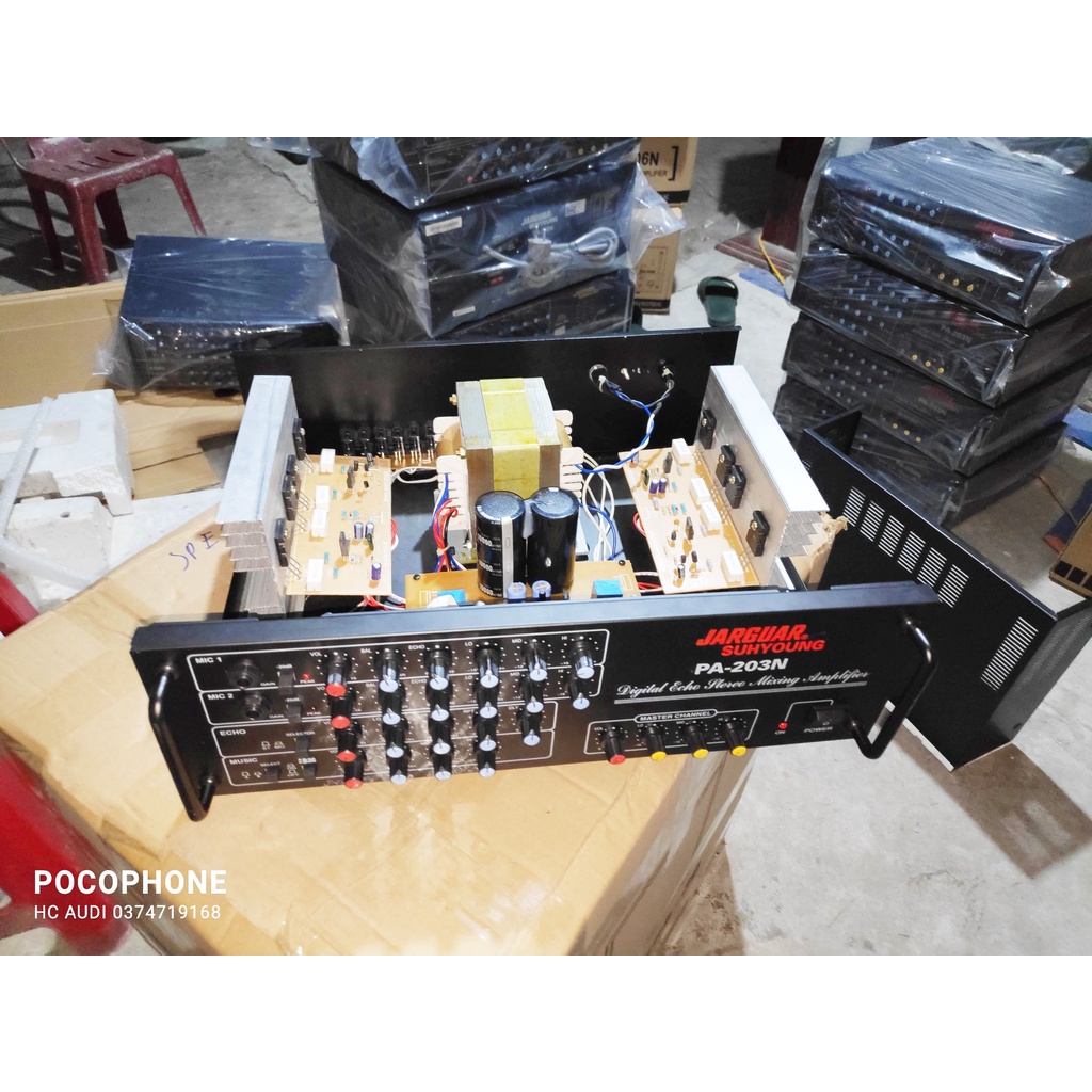 âm ly JAR GUAR 203N loại 8 sò loại biến áp đồng dòng cao I co bộ khuếch tán âm thanh cực mạnh so với các amply khác trên thị trường, thêm vào đó, sản phẩm còn có công suất lên đến 480W. Ngoài ra, với thiết kế điều chỉnh âm thanh cao thấp tùy theo từng bài hát, âm ly JAR GUAR 203N loại 8 sò loại biến áp đồng dòng cao còn làm giảm đi sự pha trộn âm thanh kém chất lượng khi bạn hát, và tạo nên âm trầm ấm đến người nghe và làm giảm tiếng ồn ào của Micro.
