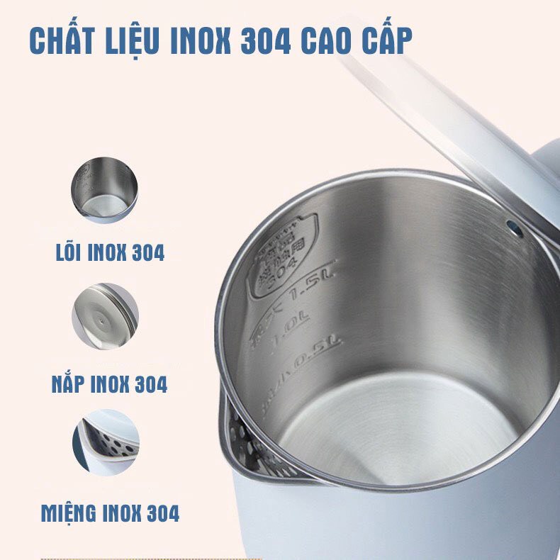 Ấm nước siêu tốc BEAR ZDH-Q15J1 - Bình đun nước lõi INOX304 cao cấp - Dung tích 1.5L - Công suất 1500W - Bảo hành 6tháng