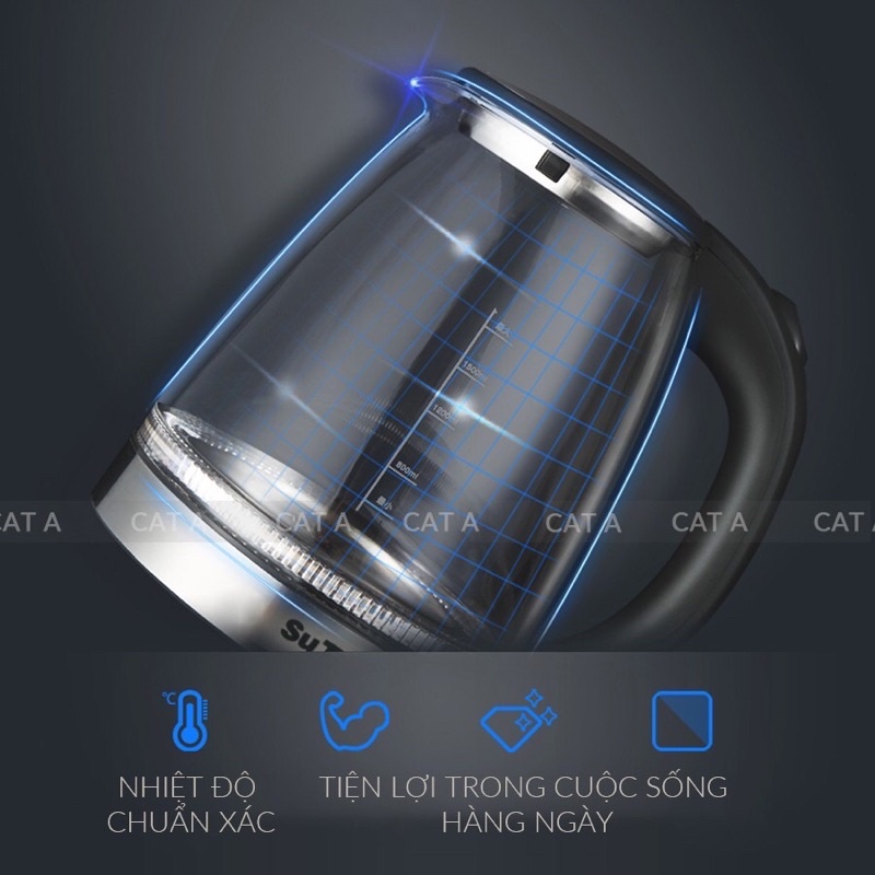 Ấm nước siêu tốc thủy tinh cao cấp - Tốc độ sôi nhanh - Chế độ tự ngắt - Dung tích lớn - Dễ dàng sử dụng
