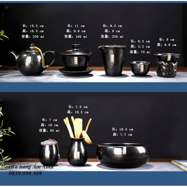 – Chất liệu: Gốm Kiến Châu, tráng men thiên mục du Trích