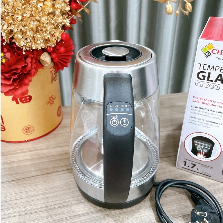 Giới thiệu [Mã ELHADEV giảm 4% đơn 300K] ẤM SIÊU SIÊU TỐC CHEF&CHEF CH1730D THỦY TINH KÈM LÕI LỌC ĐIỀU KHIỂN CẦM TAY HIỆN ĐẠI