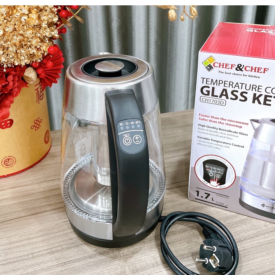 [Mã ELHADEV giảm 4% đơn 300K] ẤM SIÊU SIÊU TỐC CHEF&CHEF CH1730D THỦY TINH KÈM LÕI LỌC ĐIỀU KHIỂN CẦM TAY HIỆN ĐẠI