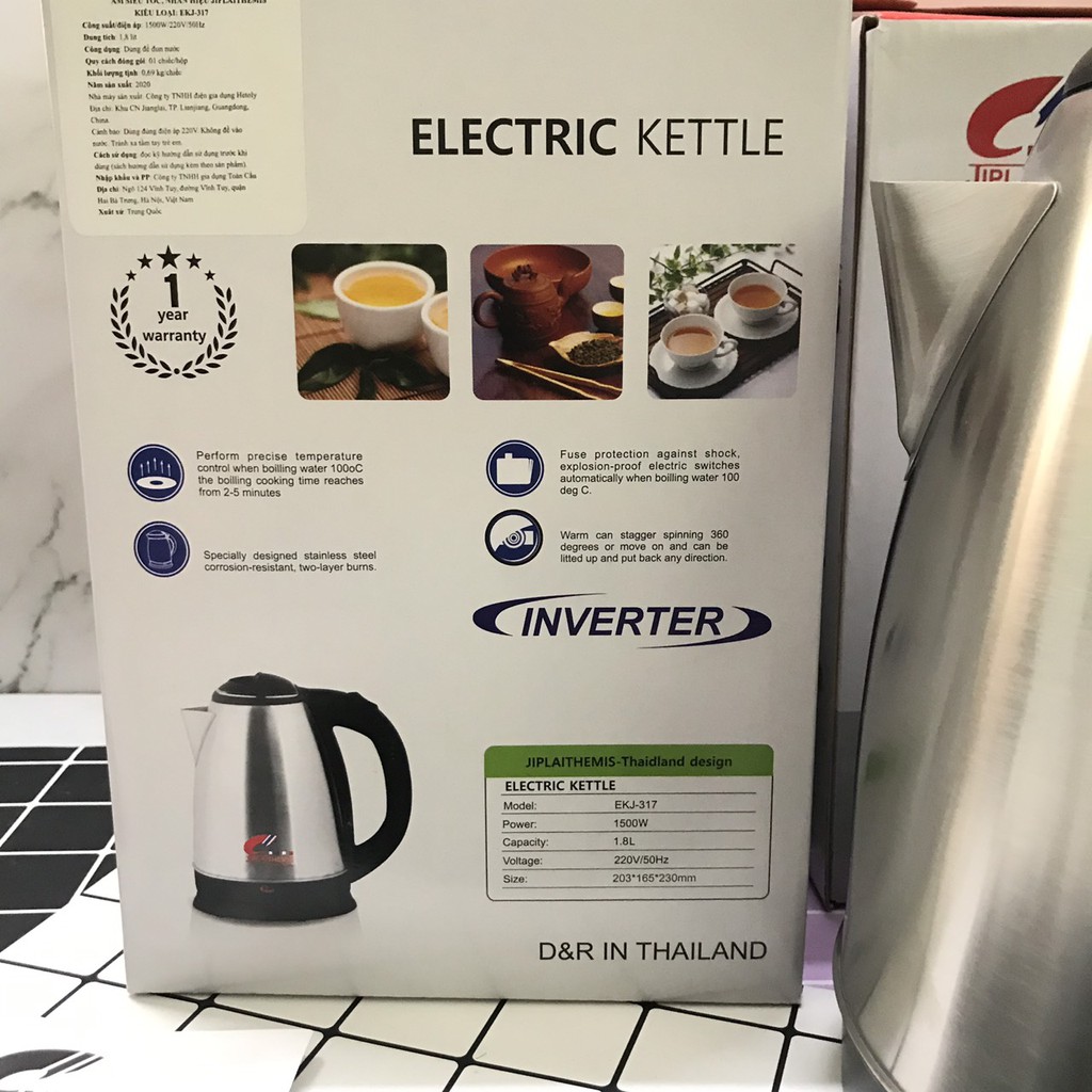 Giới thiệu Ấm Siêu Tốc 1.8L Thái Lan Electric Kettle Chính Hãng (Bảo hành 12 tháng )