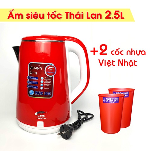 ẤM SIÊU TỐC 2,5LIT THÁI LAN + 2 cốc nhựa Việt Nhật